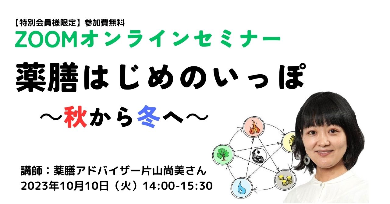 会報誌「いっぽ」の人気連載「簡単!薬膳レシピ」でおなじみ、薬膳アドバイザー片山尚美さんによる薬膳基礎講座を開催いたします。 薬膳の基本は、季節の食材を楽しむこと。 残暑の疲れや寒い季節に備えて、毎日の食事について考えてみませんか? 【オンラ... -