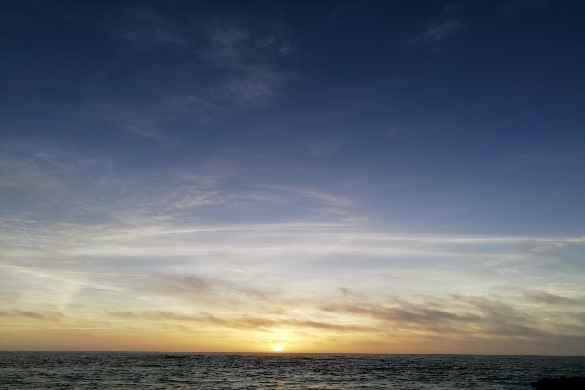 20分ほどでカベール岬についたら、海辺の岩場で朝陽が登ってくるのを待ちます。しばらくすると、だんだん空が明るくなってきて、雲がオレンジやピンク、赤や紫に染まります。その不思議な景色に、大人も子どもも目を奪われ、見惚れているうちに、朝陽が姿を現します。波の音を聞きながら朝陽を眺めていると心が晴れ、清々しい気持ちになって、「アマミキヨ」が降臨したと言われるのも納得です。