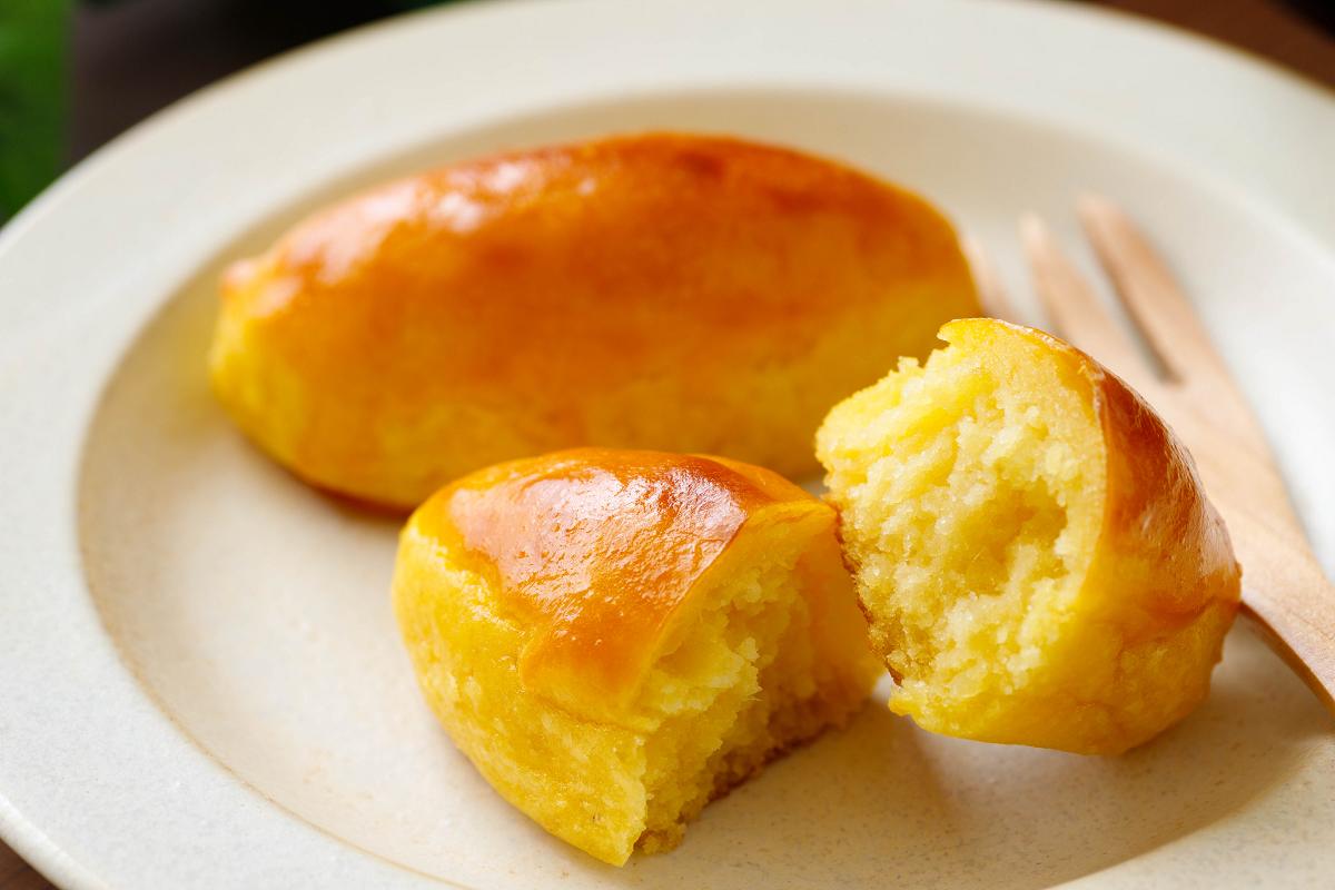 (3)楕円形(だえんけい)に成形したらクッキングペーパーを敷いたトレイに並べ、表面にといた卵黄を塗ってオーブントースターで15分。焼き色がついたらできあがり。